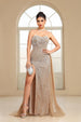 Champagne Beaded Formal Dress Strapless Sheath Prom Wedding Party Dress with Panel Train