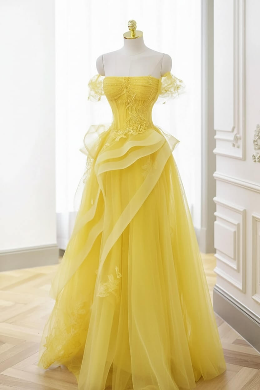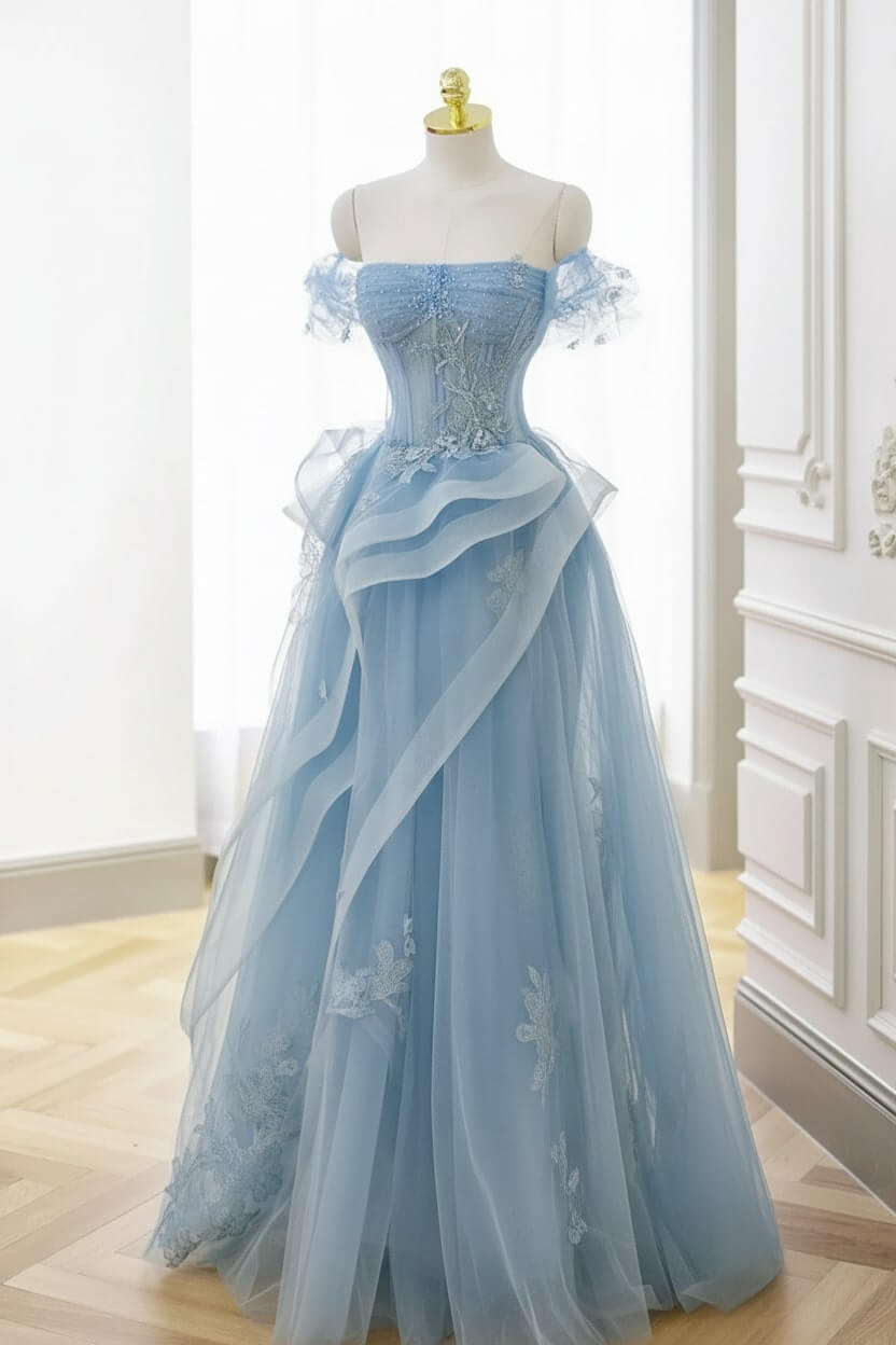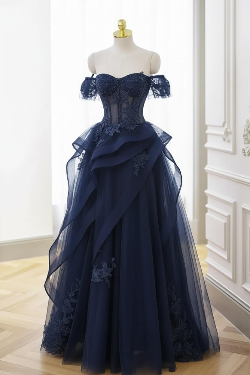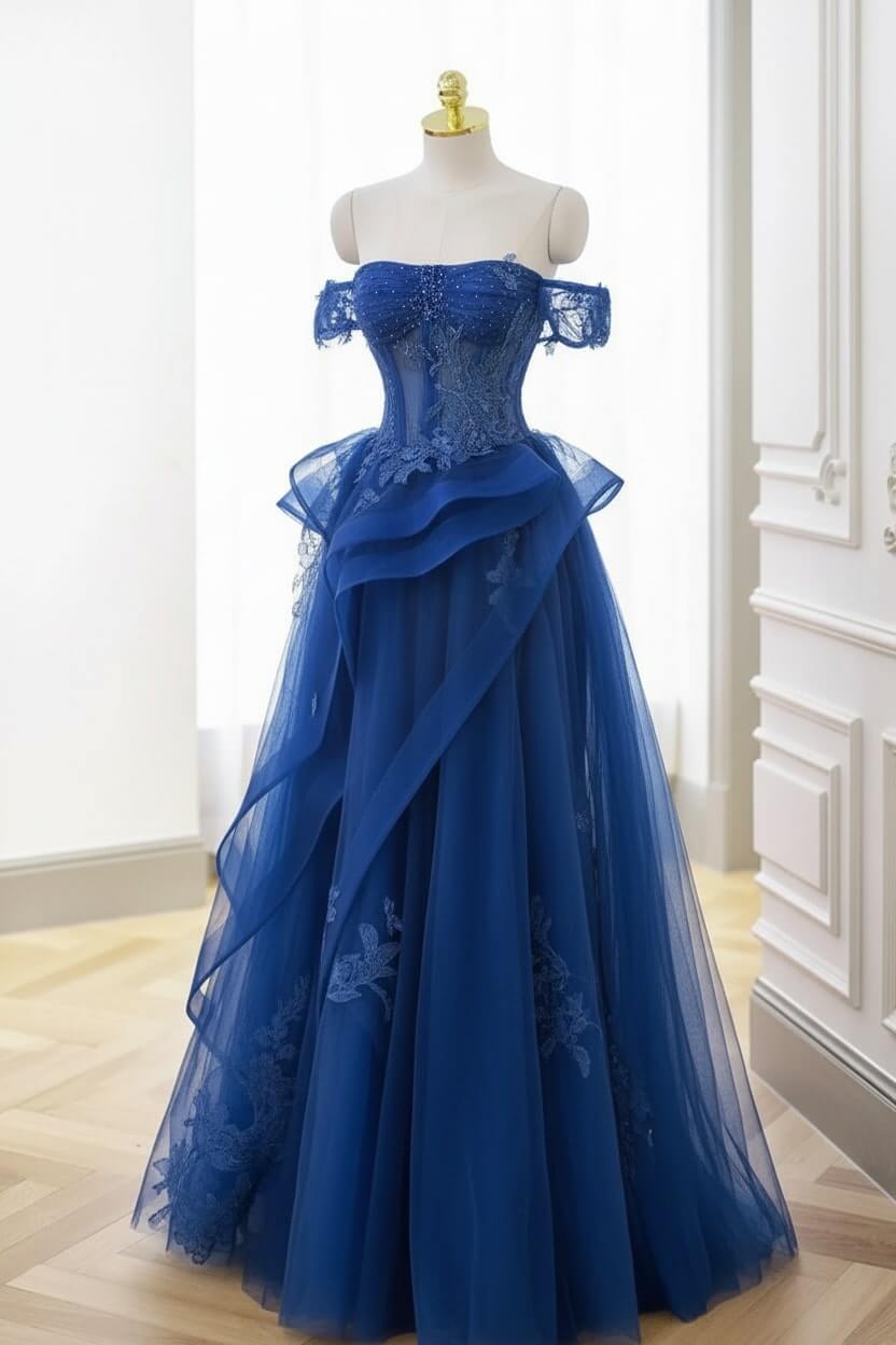 Step into the spotlight with this breathtaking green prom dress that combines timeless elegance with modern sophistication. Crafted from luxurious tulle and adorned with delicate lace appliques, this stunning gown is designed to make you feel like royalty on your special night.