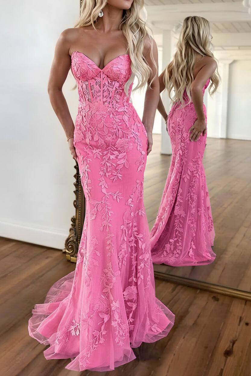 This stunning lilac mermaid lace dress is perfect for your next formal event. The strapless bodice features intricate floral lace detailing with a flattering, figure-hugging silhouette that flares out into a dramatic mermaid hem. Designed to make a statement, this elegant evening gown offers a blend of sophistication and allure, ensuring you are the center of attention. Ideal for proms, weddings, and gala evenings, this feminine lace dress combines timeless glamour with contemporary charm. Don't miss your chance to shine in this exquisite lilac lace mermaid dress.