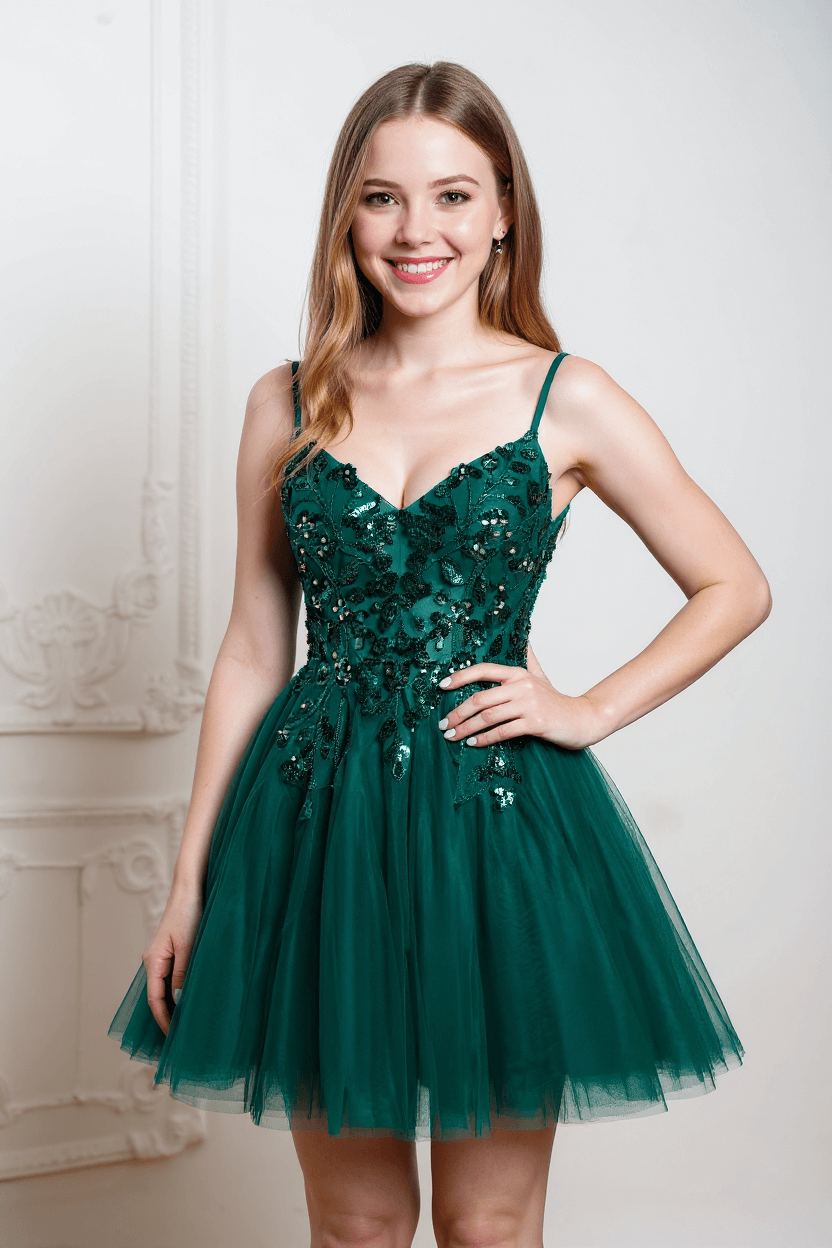 Spaghetti Straps Graduation Dress Sequin A Line Tulle Short Prom Dress